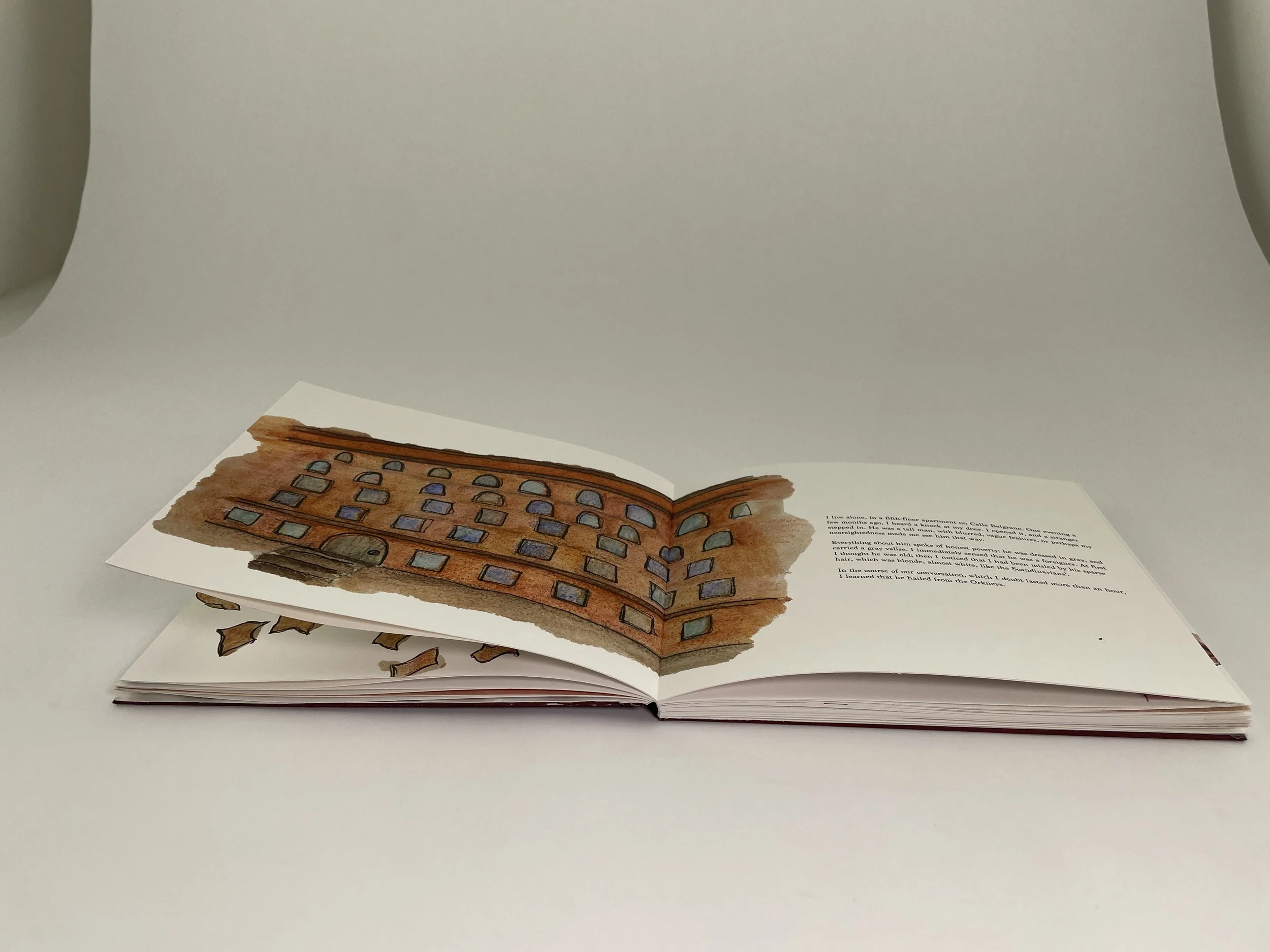 Design a book for Jorge Luis Borges’ short story The Book of Sand that enhances readability. Include your own imagery and create an 8 spread book with a format that encapsulates your chosen keywords.