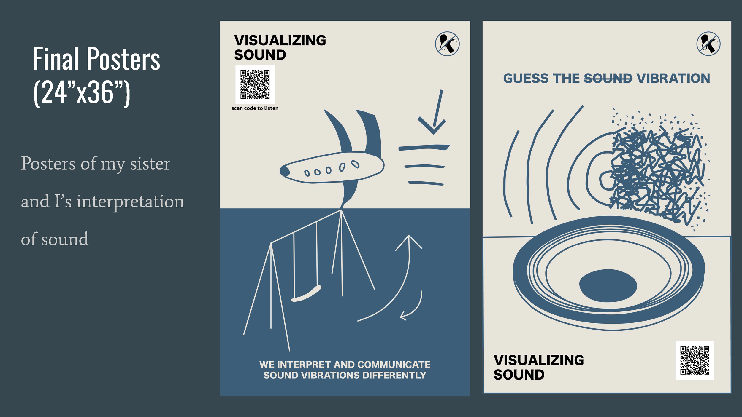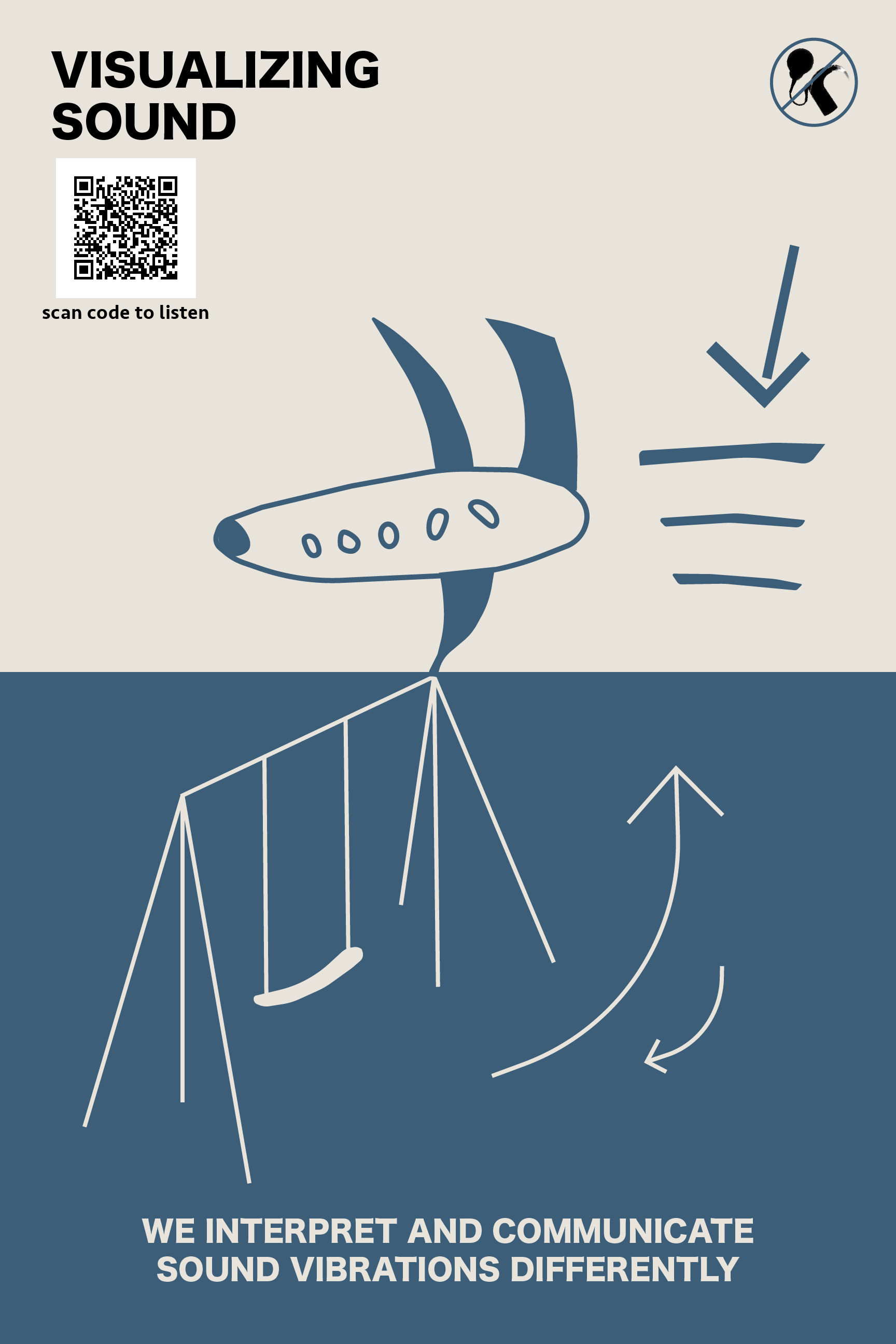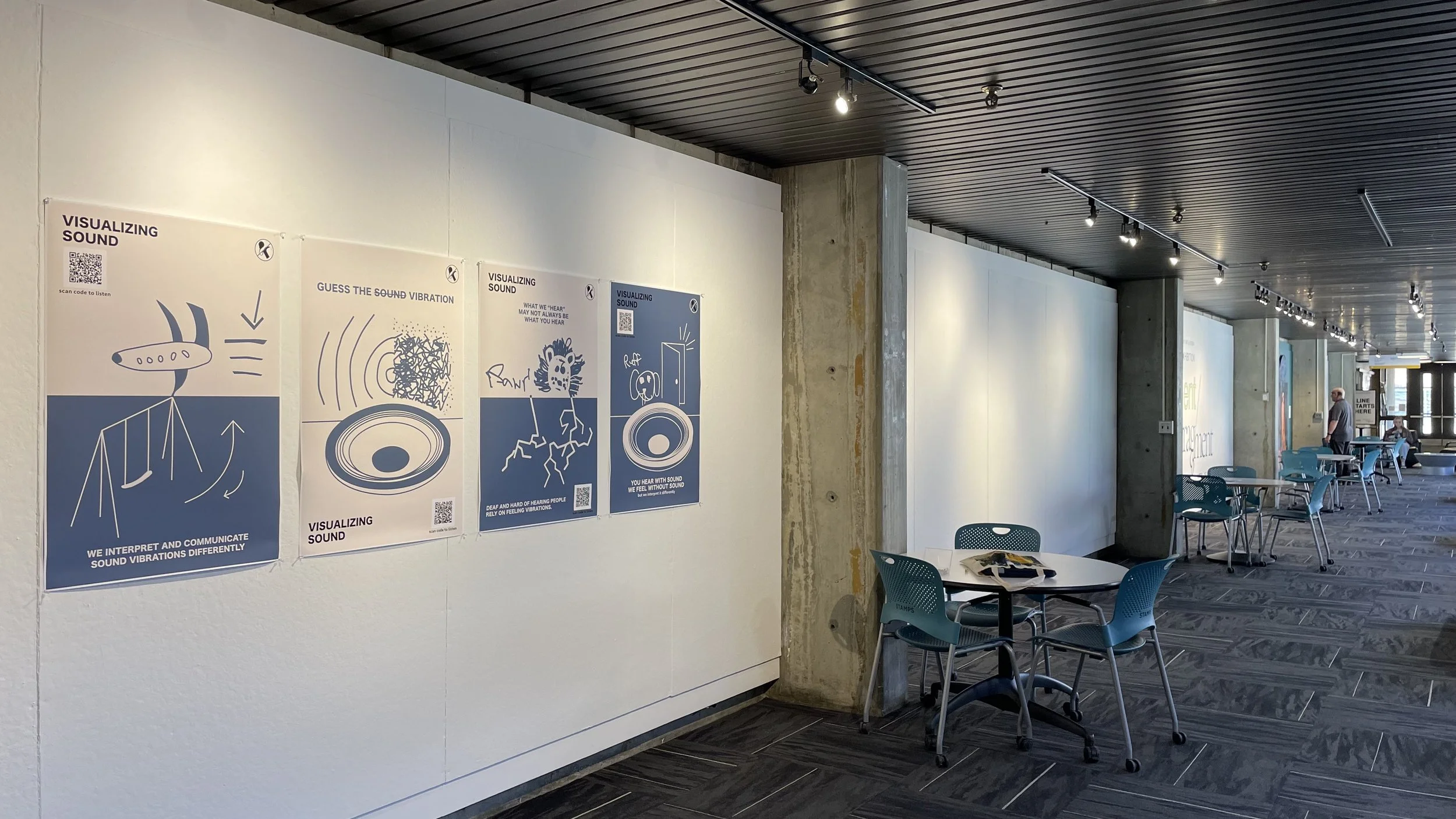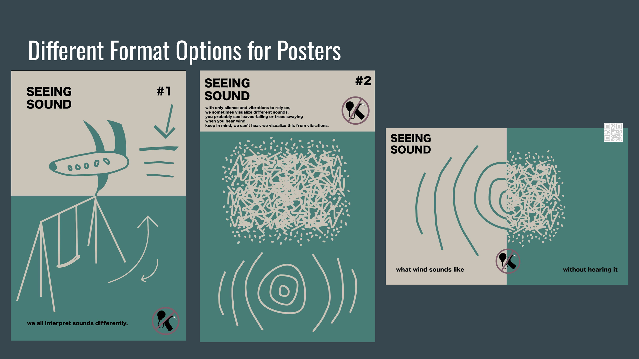 Visualizing Sound is a series of visual posters depicting the many different ways that DHH people interpret sound vibrations as well as comparing them to normal hearing people to inform the public about communication not always being the same interpretation for everyone.